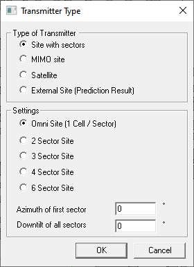 Figure 1. The Transmitter Type dialog. - Under Settings, click 3 Sector Site.