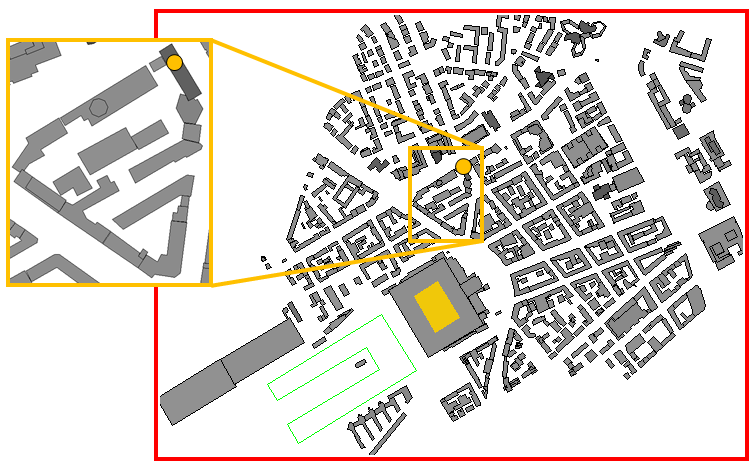 Figure 2. Place the first antenna site at the location of the orange dot.Note: The exact coordinates are not important for this example, but the above location is used in the steps that follow.The Site dialog is displayed.