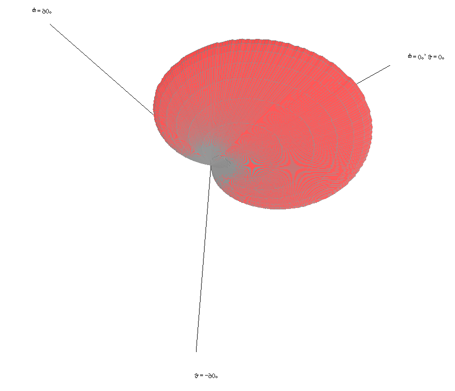 Figure 1 shows the coordinate system used in WinProp for the 3D display of antenna patterns. The main direction of radiation is ϑ = 0° and φ = 0°.