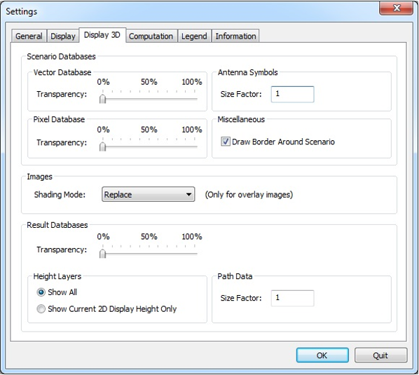 - Set the transparency level for pixels contained in pixel databases (topography or clutter/morpho databases). A value of 0% results in opaque pixels while a value of 100% results in completely transparent pixels.