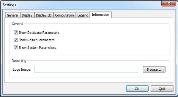 - Enable or disable the display of database, result and system parameters in the Information View.