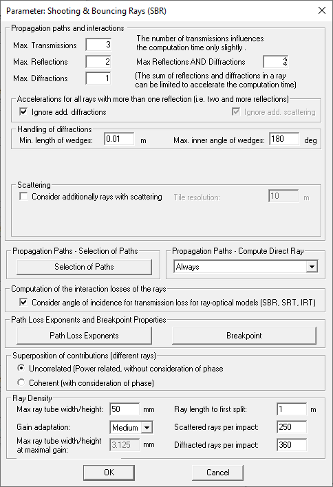 Figure 2. The Parameter: Shooting & Bouncing Rays (SBR) dialog. - Propagation Paths and Interactions