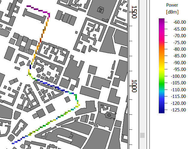 The result is, among other quantities, the actual received power for the receiving antenna. In trajectory mode, the result might look like Figure 3.