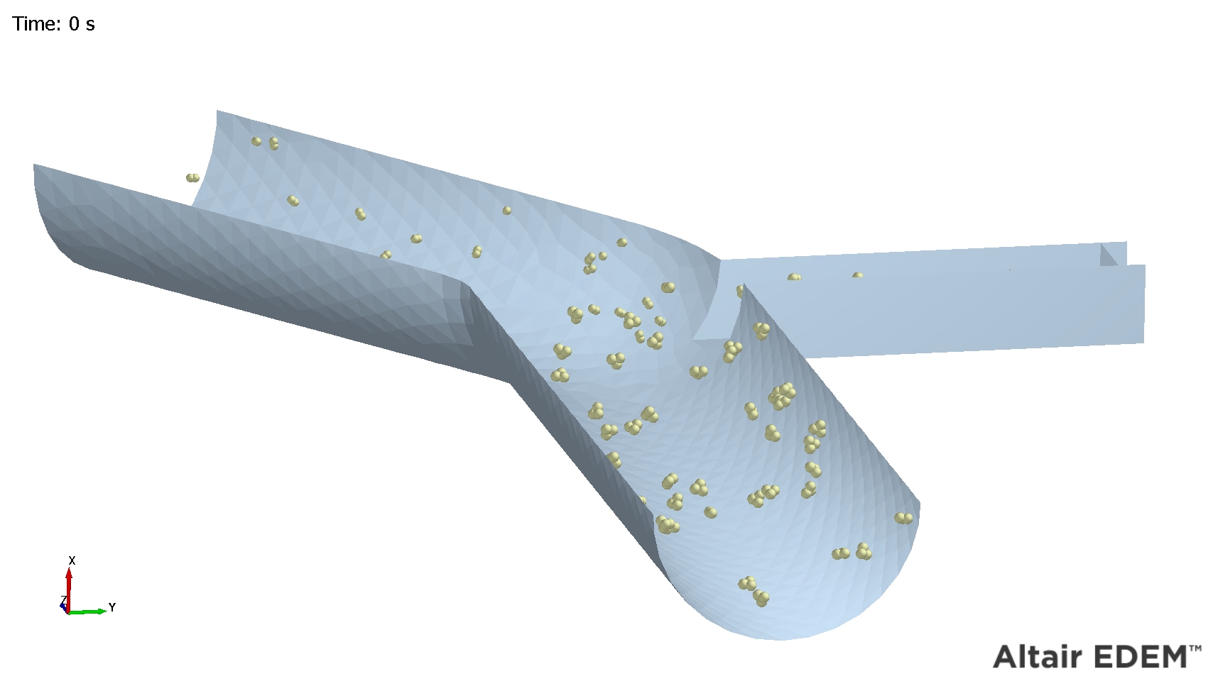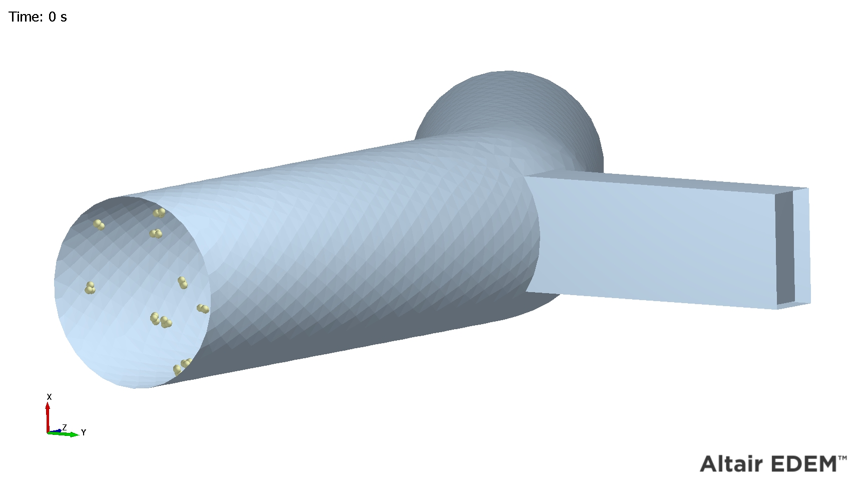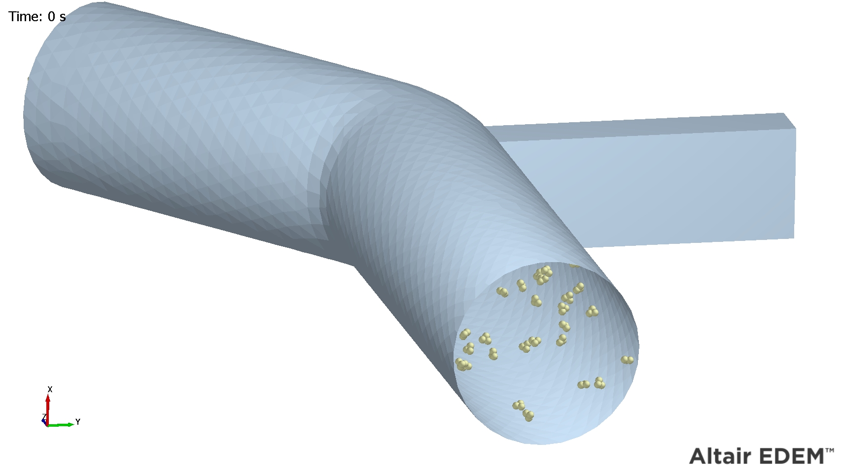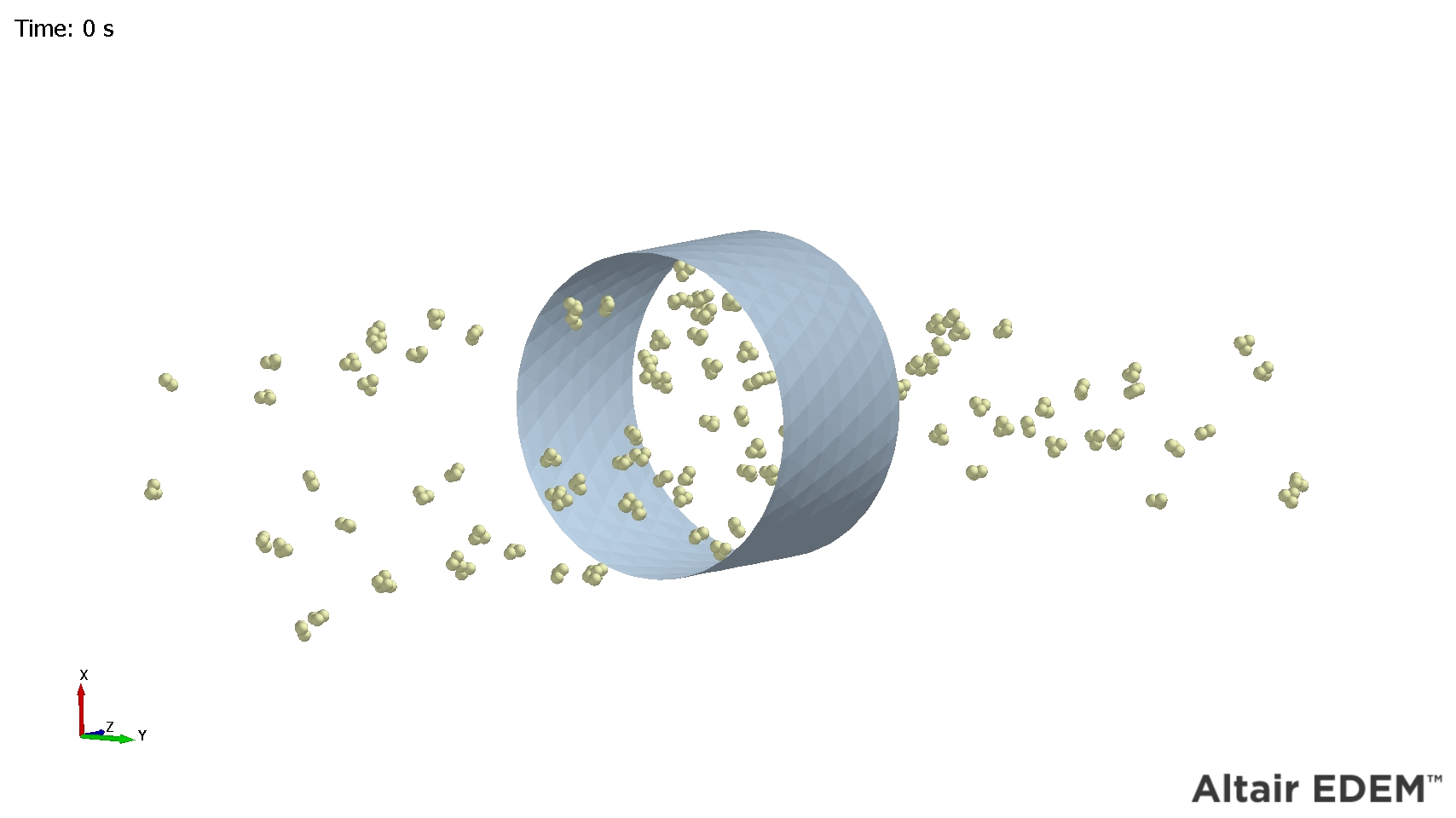 The following figure shows a model of a pipe where a geometry has been included in a slice and particles have been excluded from the slice.