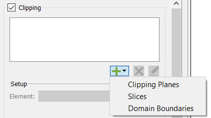 Click the + icon and select either Clipping Planes, Slices, or Domain Boundaries.
