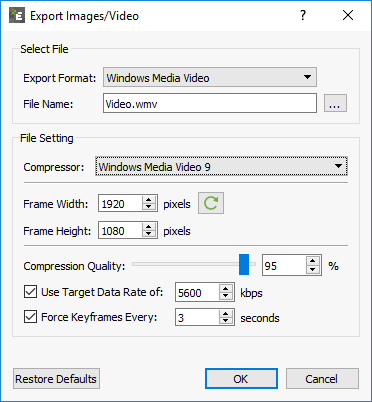 Select the codec to use video compression or uncompressed to not use video compression. The list of codecs available depends on those installed on your system and on which operating system you are running EDEM. Ensure that the system on which you intend to playback the video also has the same codec installed.