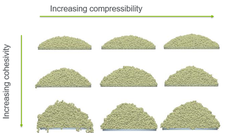 The Powders Starter Pack consists of 9 material models with the following range of behaviors.