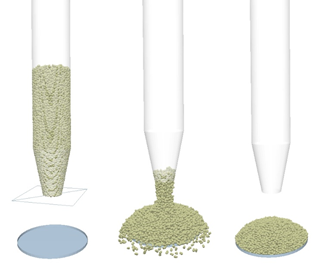 The material was allowed to settle and the bulk density calculated from the height of the material in the cylinder following a standard experimental process (World Health Organisation, 2017[4]). A Time Step of 2e-6 s was used for bulk density tests.
