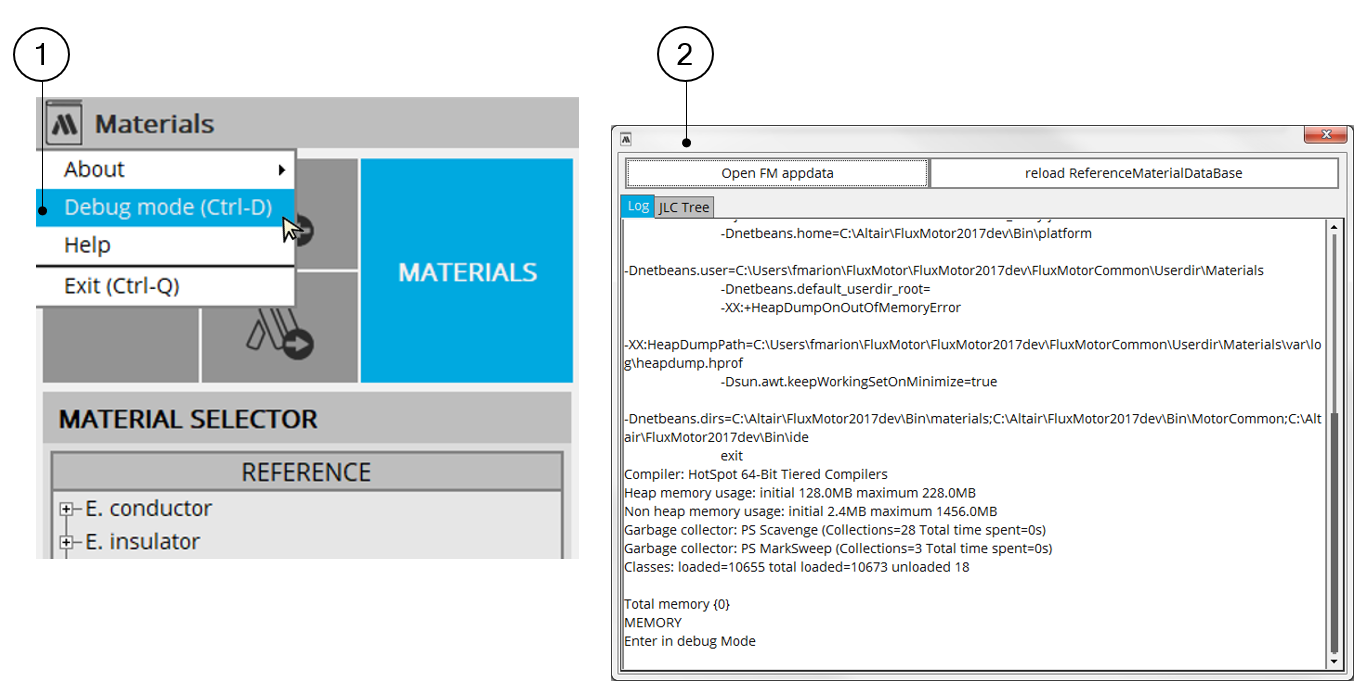 | 1 | Access to “Debug mode” from the top menu of “Materials” application. |