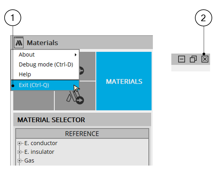 | 1 | Close “Materials” application from the top menu of “Materials” application. |