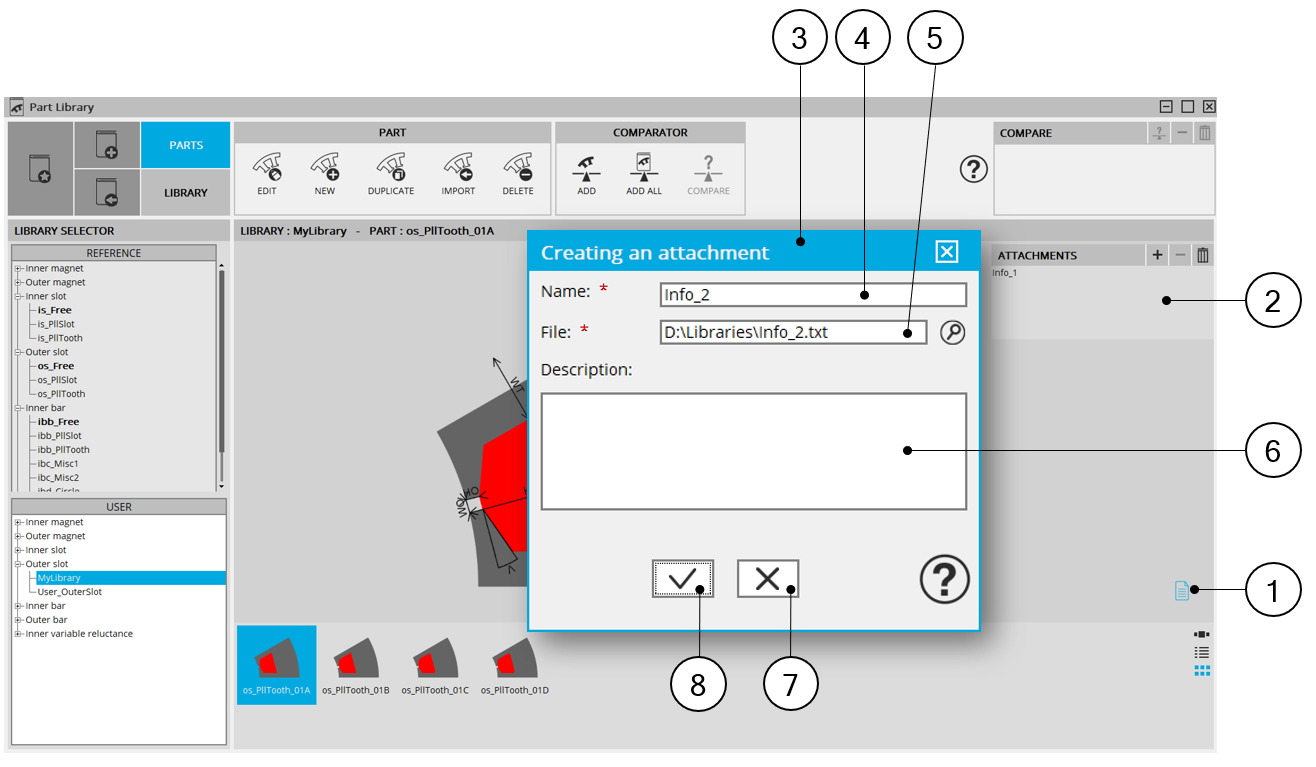 | 8 | Button to apply inputs, create the new attachment and close the dialog box. |
