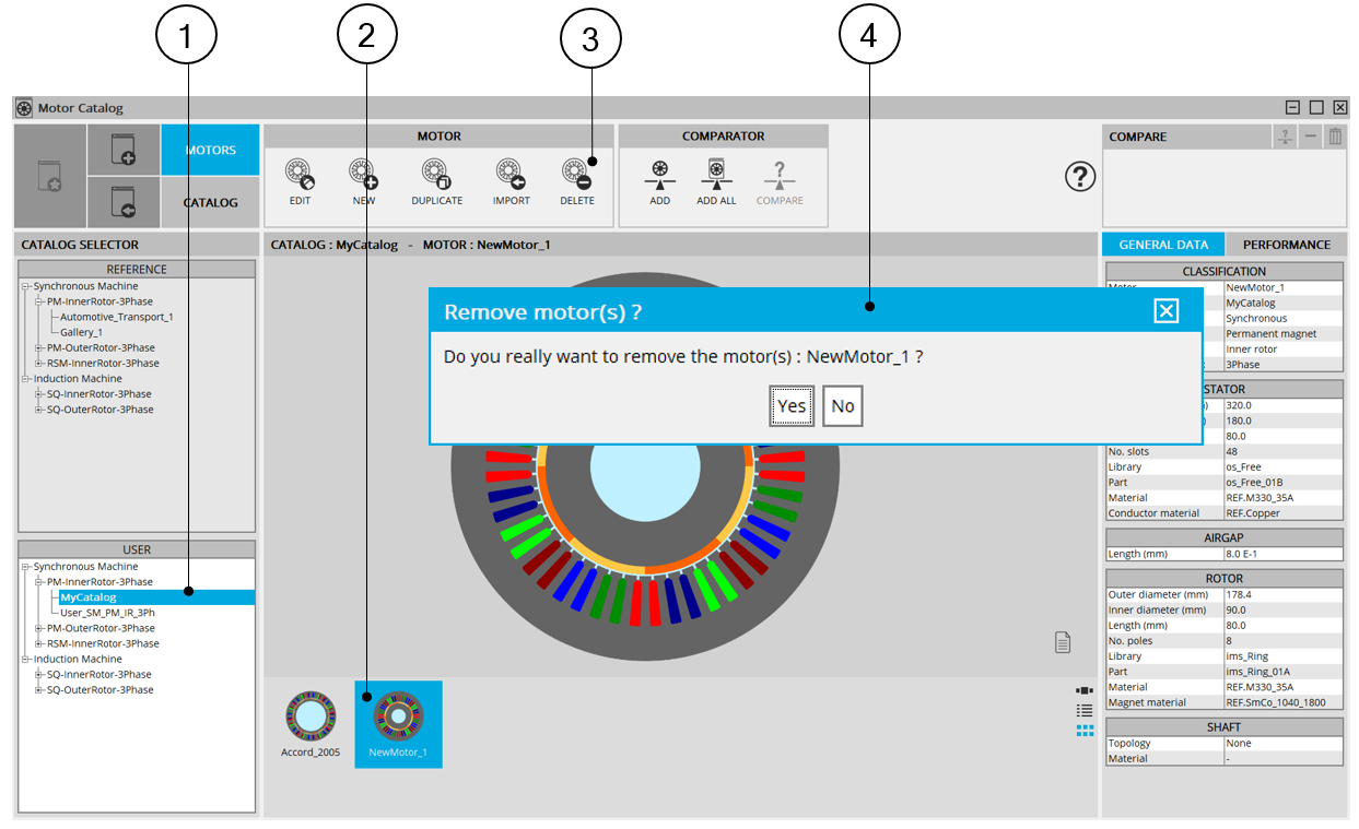 | 2 | Select the motor to delete (several motors can be selected to be deleted). |