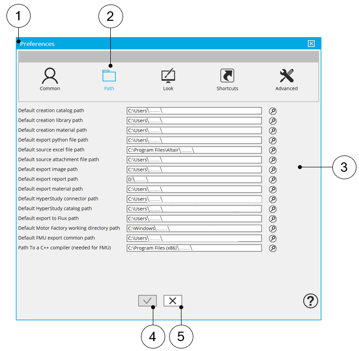 | 4 | Button to apply changes and close the Preferences dialog box. |