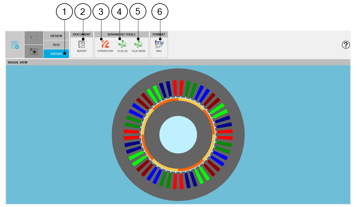 On the other hand, the function “FLUX2D” allows to build and to export a model in Altair® Flux® 2D environment for performing advanced studies either with magneto static or transient applications.