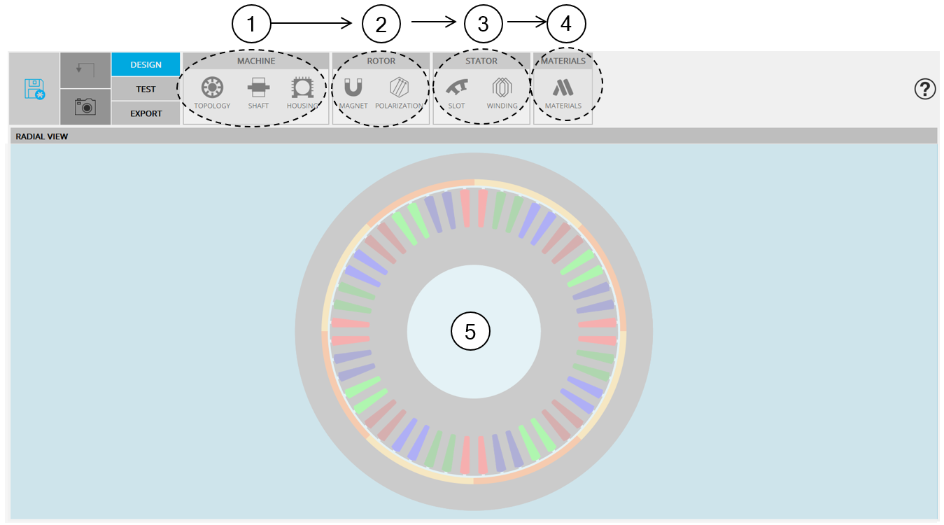| Zone 5 VIEW | Visualization of the motor radial view. The winding (automatically