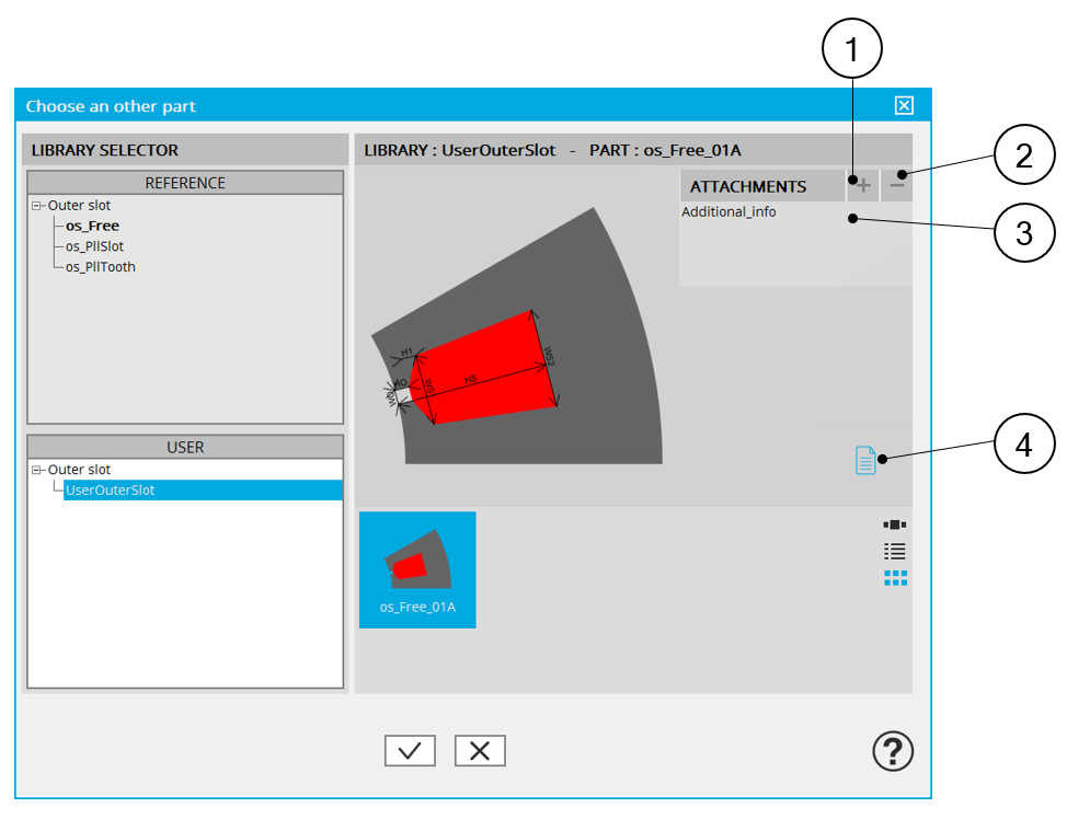 Clicking on the "Slot shape" button opens a dialog box, allowing access to the slot libraries.