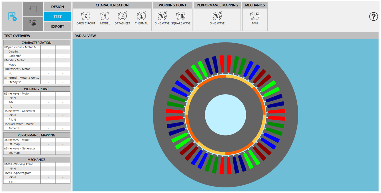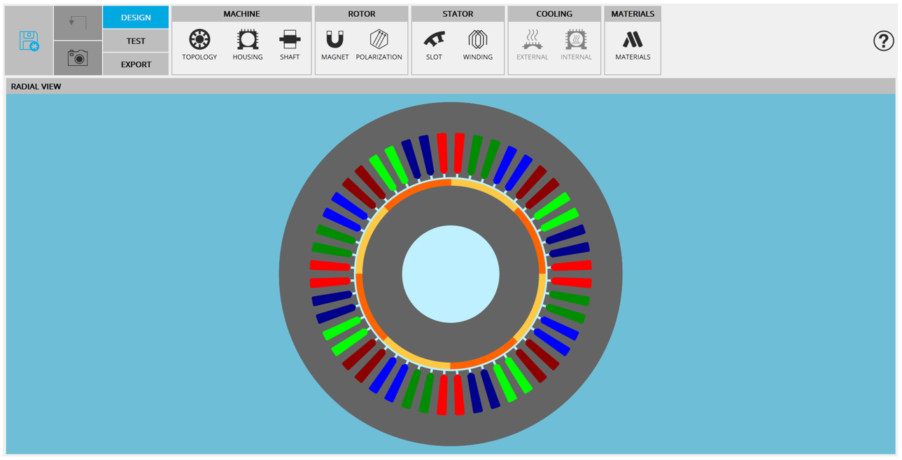 - The DESIGN area to design The DESIGN area to design the motor (topology, winding,