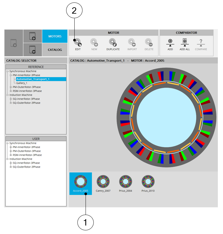 - From the “Motor Catalog”, by editing a selected motor in a catalog