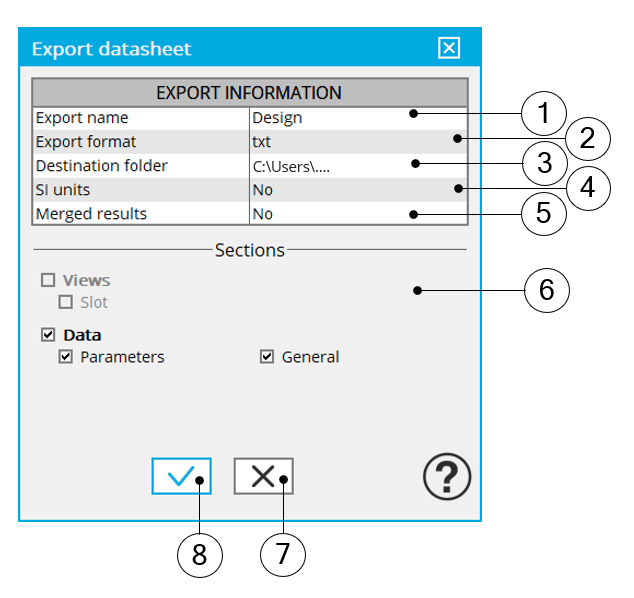 | 7 | Button to apply inputs, close the panel and open the folder in which the generated text files are stored |