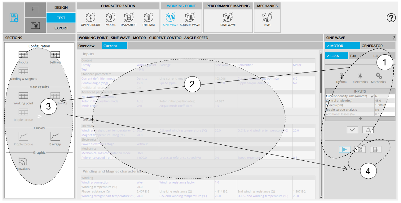| Zones of the test page view Example for a Synchronous Machine with Permanent Magnets |