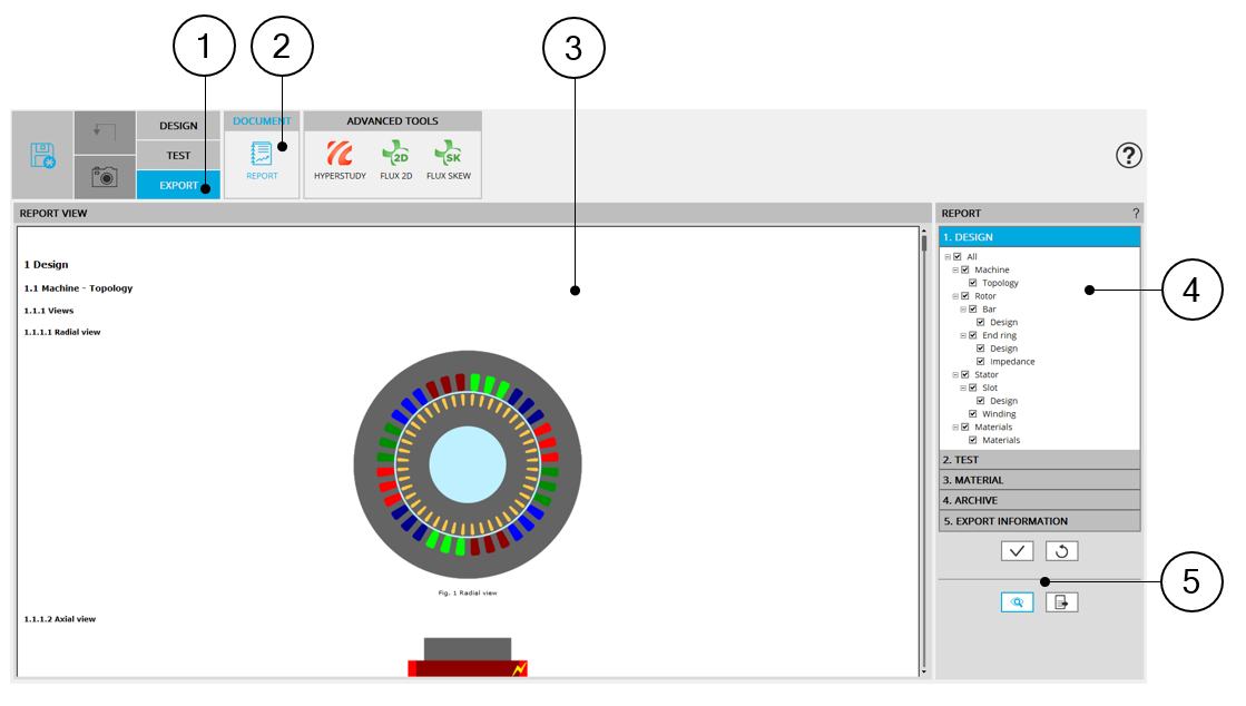 The aim of the export is to quickly build and export, a report showing all the work achieved for designing and testing the machine.