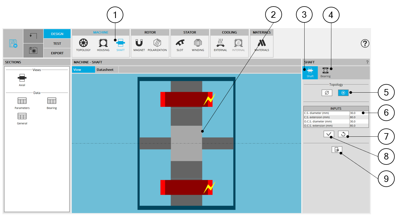 | 2 | Visualization of the motor axial view to visualize the shaft topology with bearings |