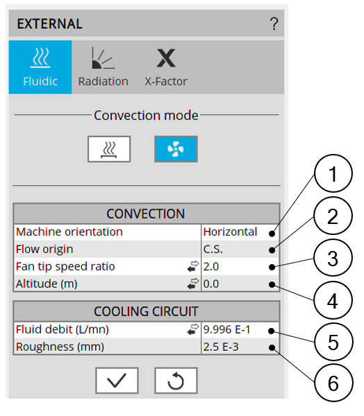 | 7 | Selected button to set that the external areas of the frame and the end caps are cooled by forced convection (forced fluid flow around the machine). |