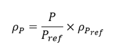 The mass density ρ computed at a pressure P is computed as below: