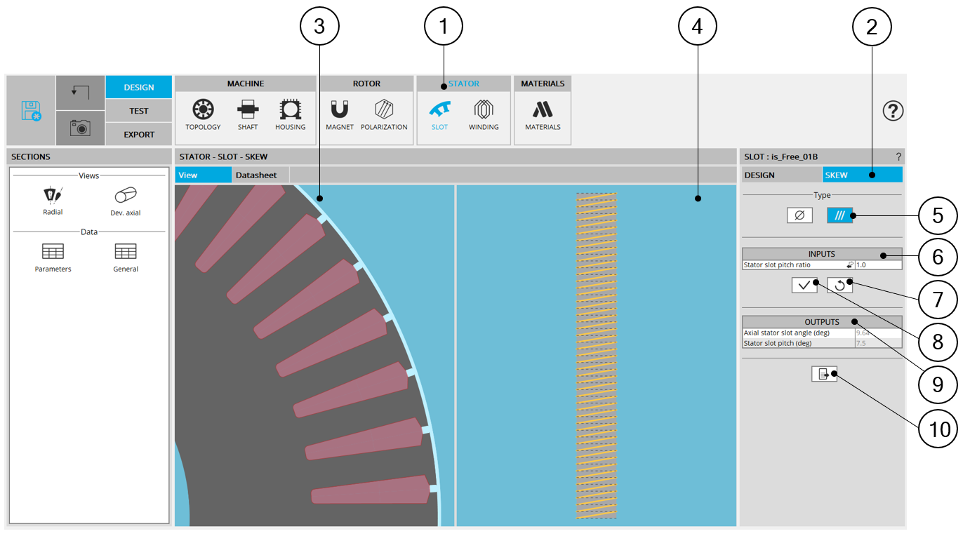 Note: The user can add a skew angle on the rotor or on the stator. If a skew is already defined in the rotor when setting a skew on the stator, the rotor skewing will be automatically reset to “None”.