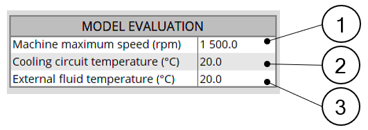 | 2 | Cooling circuit temperature. It is the temperature used in external cooling panel to evaluate the convection occurring in the cooling circuit. All the results shown for the cooling circuit in external cooling panel and datasheet use this temperature as the temperature of the coolant all along the circuit. This parameter only exists when a cooling circuit has been defined by the user in the MACHINE subset, HOUSING panel, CIRCUIT setting. Note: This temperature is only used for the model
