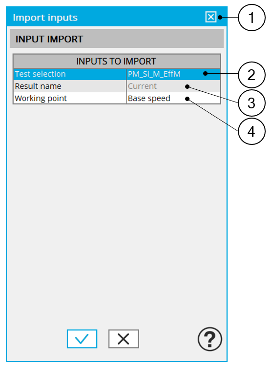 The set of inputs can be imported from another test already performed in Motor Factory Test environment.