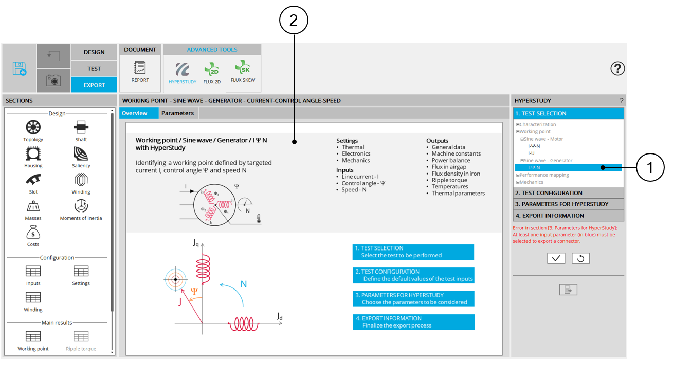 | 1 | Selection of a test to be performed by HyperStudy® |