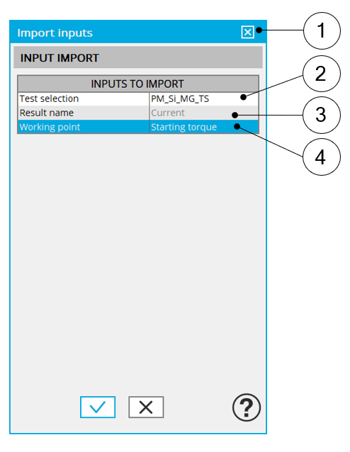 The set of inputs concerning the speed and the losses, can be imported from another test already performed in Motor Factory Test environment.