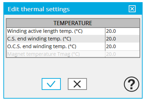 - Either you can define the temperatures of active components (Magnet and winding) or define the physical properties of the materials needed to run the tests without any thermal computation