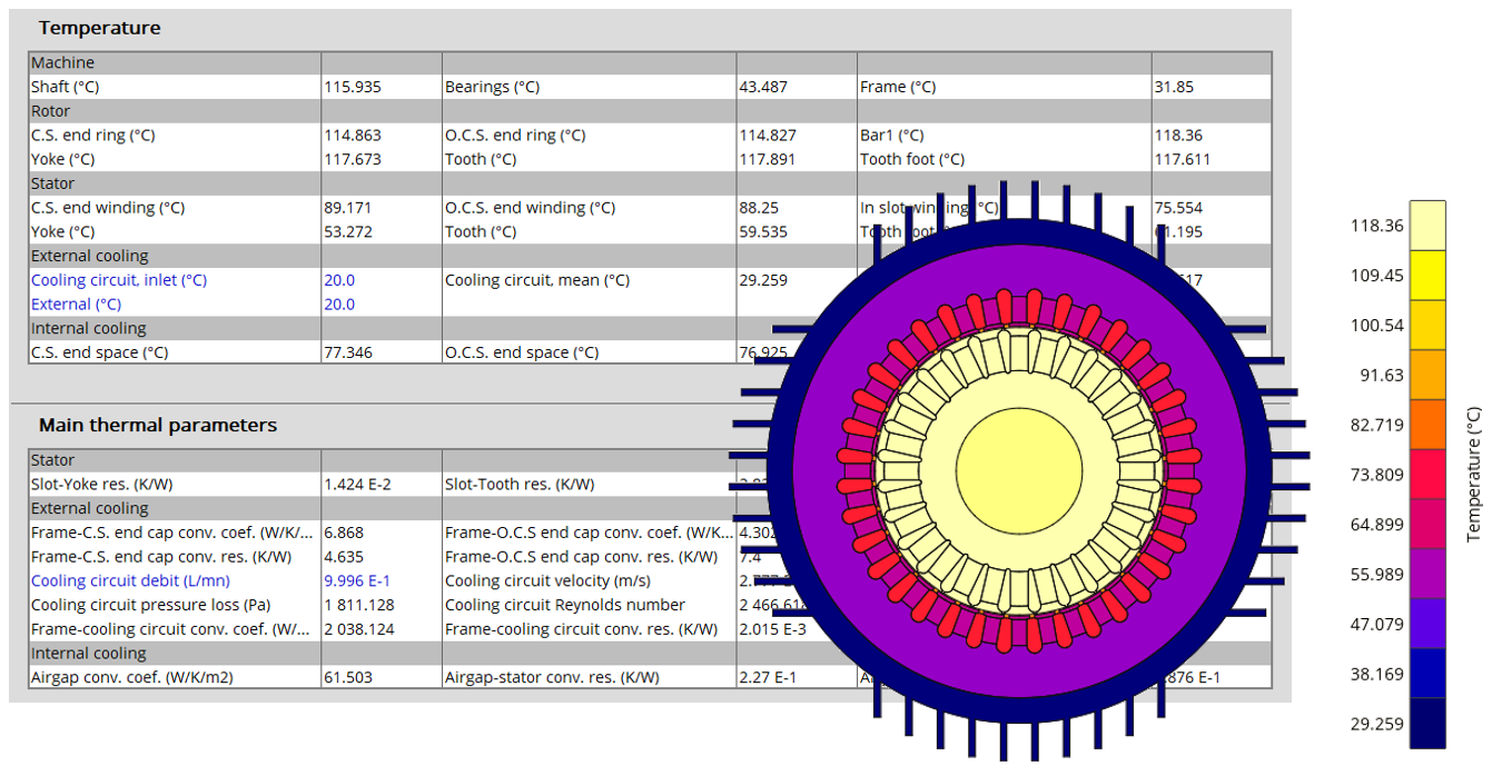 A thermal working point defined by a speed and a set of losses can be considered to compute the temperature charts and the main thermal parameters. The inputs describing the thermal working point can be set manually or imported from some electromagnetic tests previously solved.