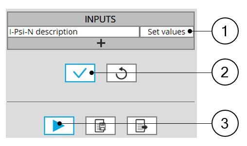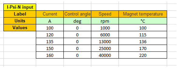 1 Click on the button “Set values” of the field “ I, Ψ, N description” to define the working points in a dialog box. Refer to the next illustration which shows how to fill the working point table.