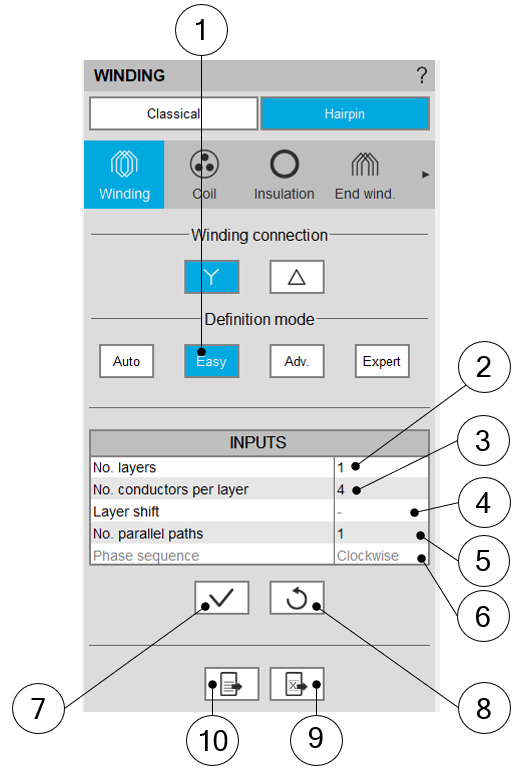 1 Selection of the Easy mode for building the winding architecture.