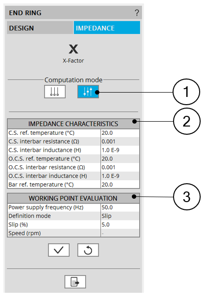 When constant computation mode is set, the inter-bar end-ring resistance and inductance values must be set by the user. The values are given for a reference temperature.