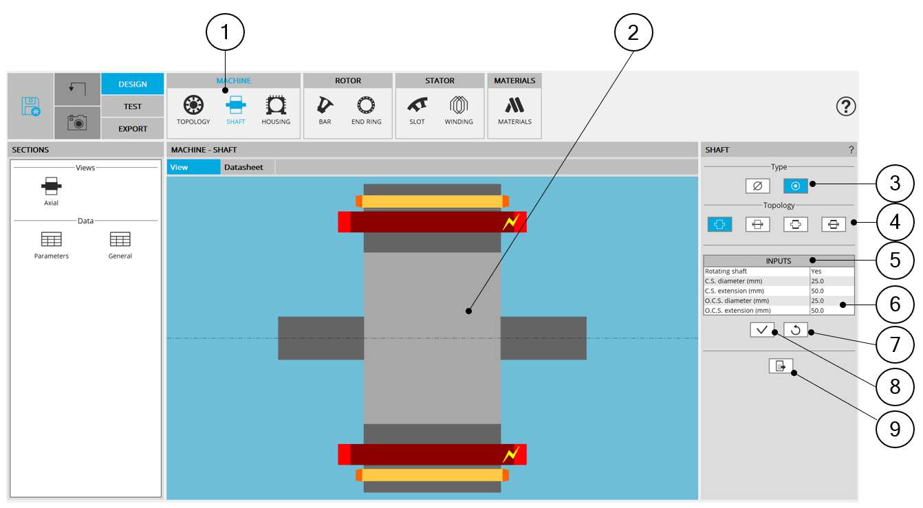 | 2 | Visualization of the motor axial view to visualize the shaft topology and dimensions. |