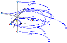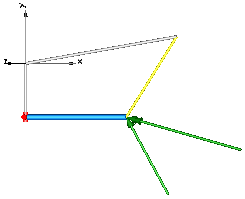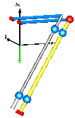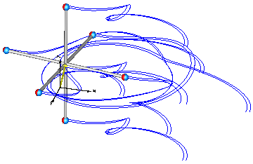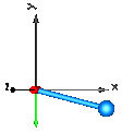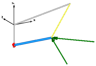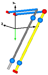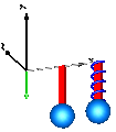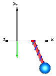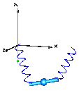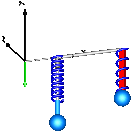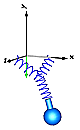 This example shows that a force component may have a mass. The 3-dimensional spring as used in this example, has an optional point mass between the two points where the spring is attached. In the animation, this point mass is represented by a small, light blue, sphere.