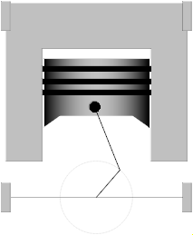 Cylinder with rod and crank of a combustion engine. Used as submodel in Loops.EngineV6.