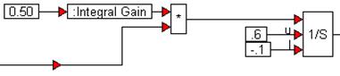 The integration is performed using a limitedIntegrator to prevent windup. The upper and lower limits are set to 0.6 and –0.1 respectively, and the integral gain is set to 0.50.