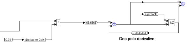 The derivative term, encapsulated as a compound block named derivative term is implemented as:
