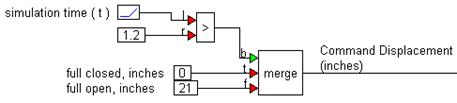 To test the system, an elevator door open-close cycle is constructed. A typical cycle is to open for 1.2s followed with a close command. An open command means the desired door displacement is 21 inches, while the close command implies that the desired door displacement is 0 inches.