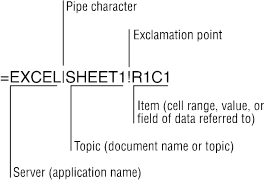 A DDE link consists of a three-part link address contained in both the source (server) and destination (client) files. An example of such an address is shown below: