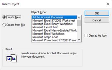 1. Choose Blocks > Extensions > OLEobject and click in the Embed work area.