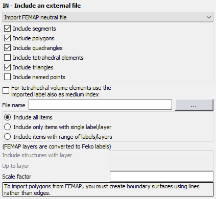 Figure 1. The IN - Include an external file (FEMAP neutral) dialog