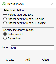 - To calculate the maximum absorption in a 10g cube in the model, select Spatial-peak SAR of a 10g cube.