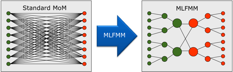 The MLFMM can be applied to large models that were previously treated with the MoM without having to change the mesh.