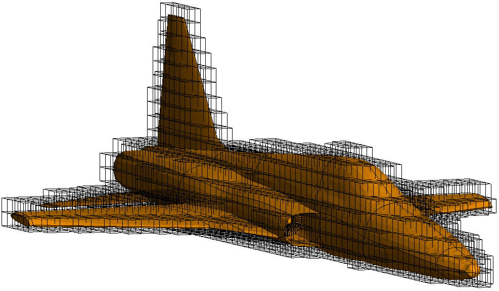Feko employs a boxing algorithm that encloses the entire computational space in a single box at the highest level, dividing this box in three dimensions into a maximum of eight child cubes and repeating the process iteratively until the side length of each child cube is approximately a quarter wavelength at the lowest level. Only populated cubes are stored at each level, forming an efficient tree-like data structure.